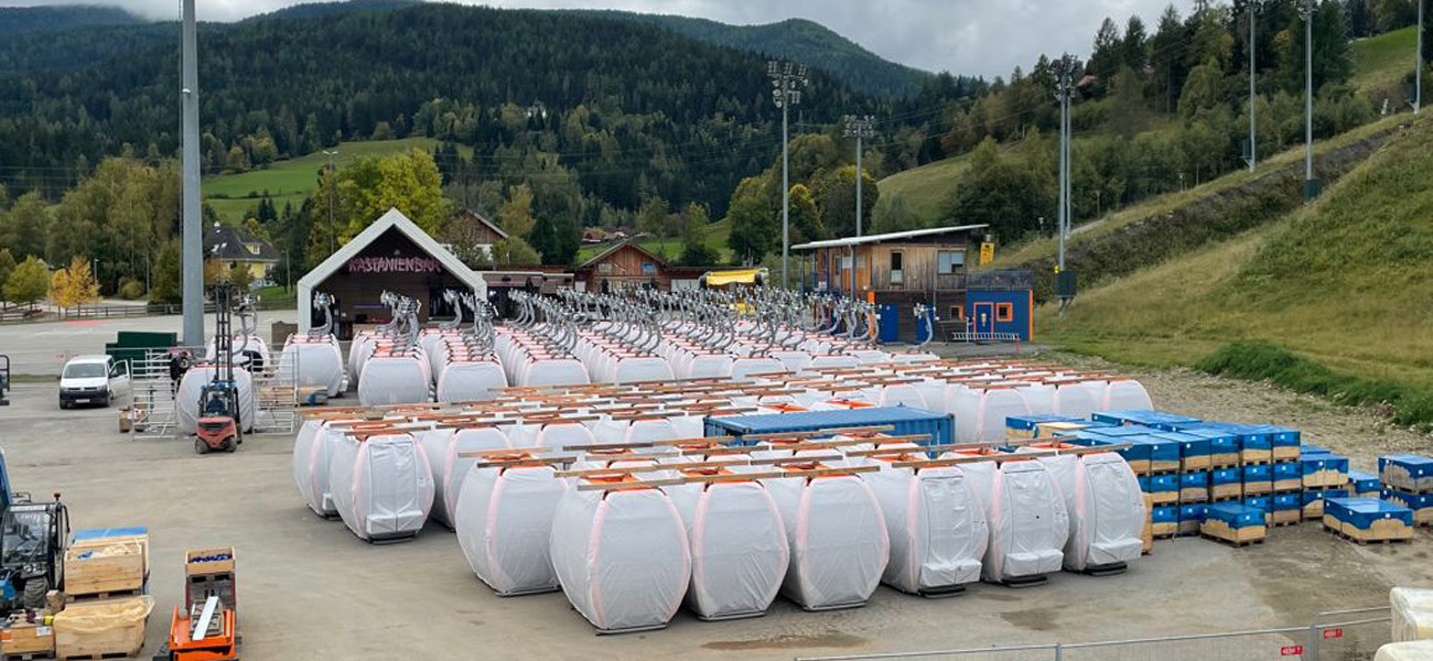 Auch die Montagearbeiten der neuen 10er Gondeln schreiten zügig voran.
