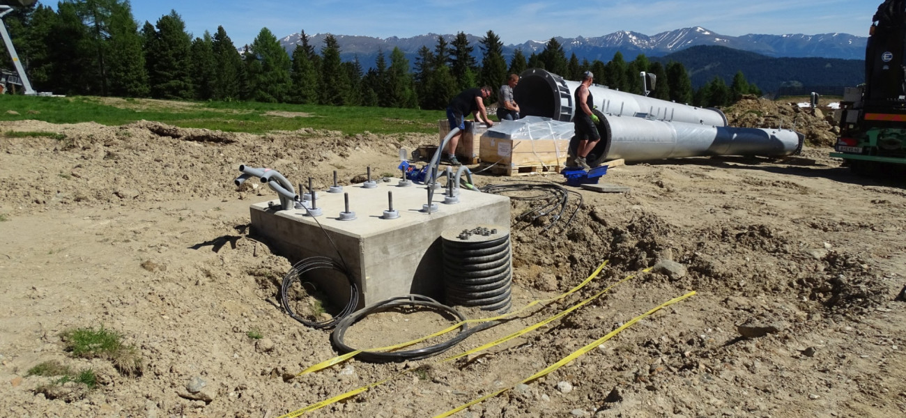 Inzwischen wurde auch schon mit der Montage der neuen Seilbahnstützen begonnen.