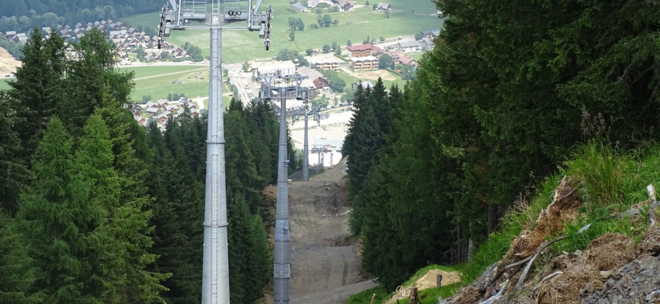 Auch in der ersten Sektion vom Tal zur Mittelstation wurden bereits Stützen montiert.