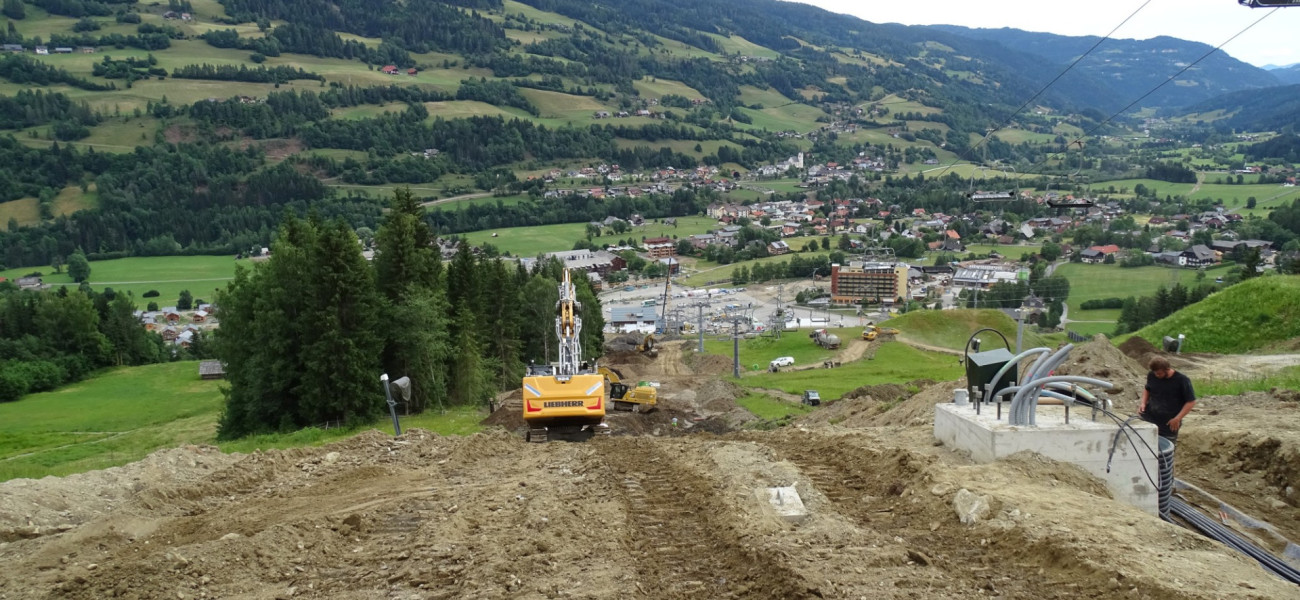 Nicht nur bei den Stationsgebäuden wird mit Hochdruck gearbeitet, auch der Kabelgraben entlang der Seilbahntrasse ist eine große Baustelle.