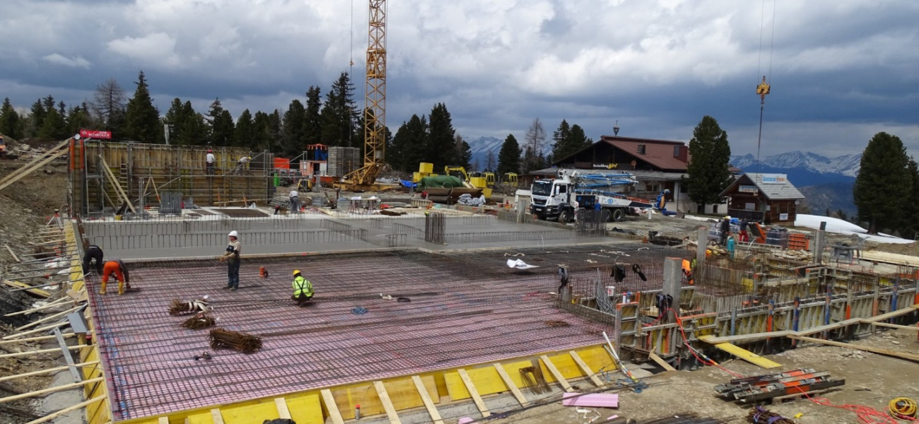 Auf der Bergstation wird mit Hochdruck an der Bodenplatte vom Stationsgebäude gearbeitet.