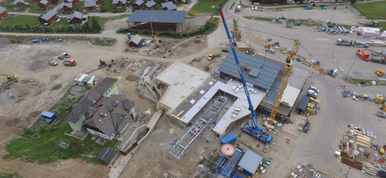 Inzwischen wurde bei der Talstation bereits mit der Montage durch die Firma Doppelmayr begonnen. Heute wurde die Seilscheibe an Ort und Stelle gehoben.