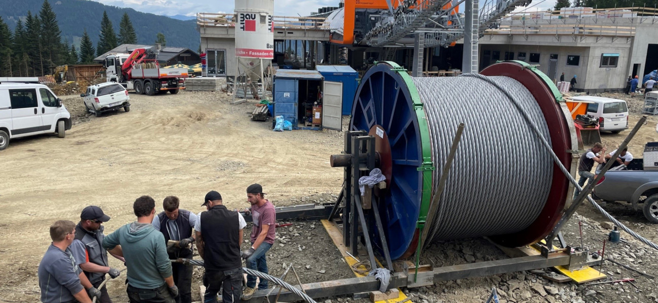 Das Seil für die zweite Sektion wurde geliefert, das Montageteam hat schon mit den Vorbereitungen für den Seilzug begonnen!