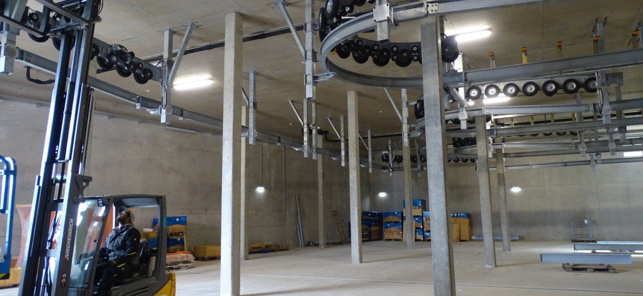 In der Gondelgarage bei der Mittelstation erfolgen die letzten Montagearbeiten.